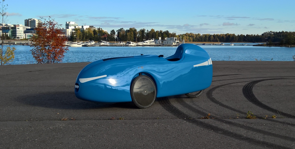 Ensimmäinen lähtö ei tosin ollut elegantein - tyyni kaunis aurinkoinen kirpeä aamu ja tuore velonautti asettautuu rauhassa nauttien ohjaamoonsa. Ensimmäinen käännös pihasta, triken jälkeinen valtava kääntösäde yllätti ja siinä sitten oltiin heti pohjasta kiinni kanttikivessä. Huomenna teippaan peltipalat kyhmyjen alle...