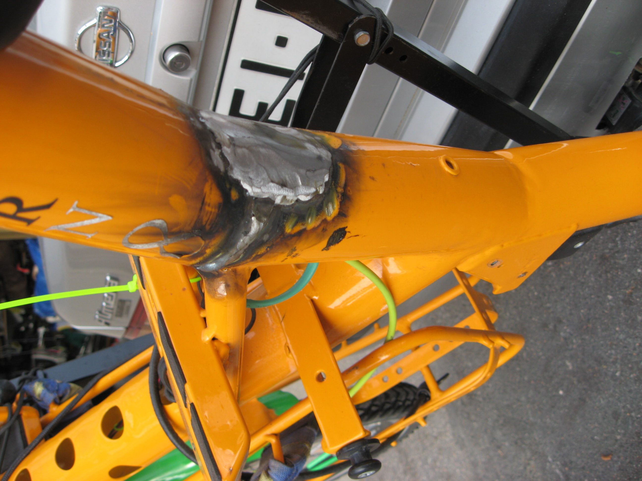 Tapsa sen aloitti . Nyt päivän lenkin jälkeen , pesin päivän kuria pois . Huomasin että runkoputki haljennut . Nyt suunitella siihen vahvike ja hitsata kasaan . Onneksi ei tapahtunut pahempaa. Lenkillä ihmettelin jotenkin raskasta menemistä . Tällästä en ounastellut . Onneksi on teräsrunko , voipi hitsata naapurin autokorjaamolla. Kuvia myöhemmin halkeemasta ja sen korjaamisesta.