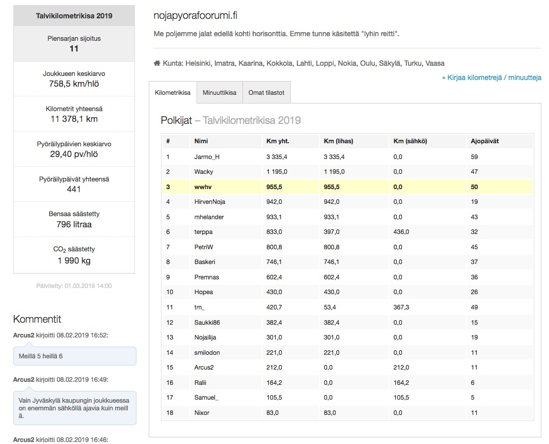 Osallistuminen tärkeintä, ei toisten kilometreistä kukaan hyödy, omat kilometrit vaikuttavat omaan kuntoon ajoi sitten vähän tai paljon.