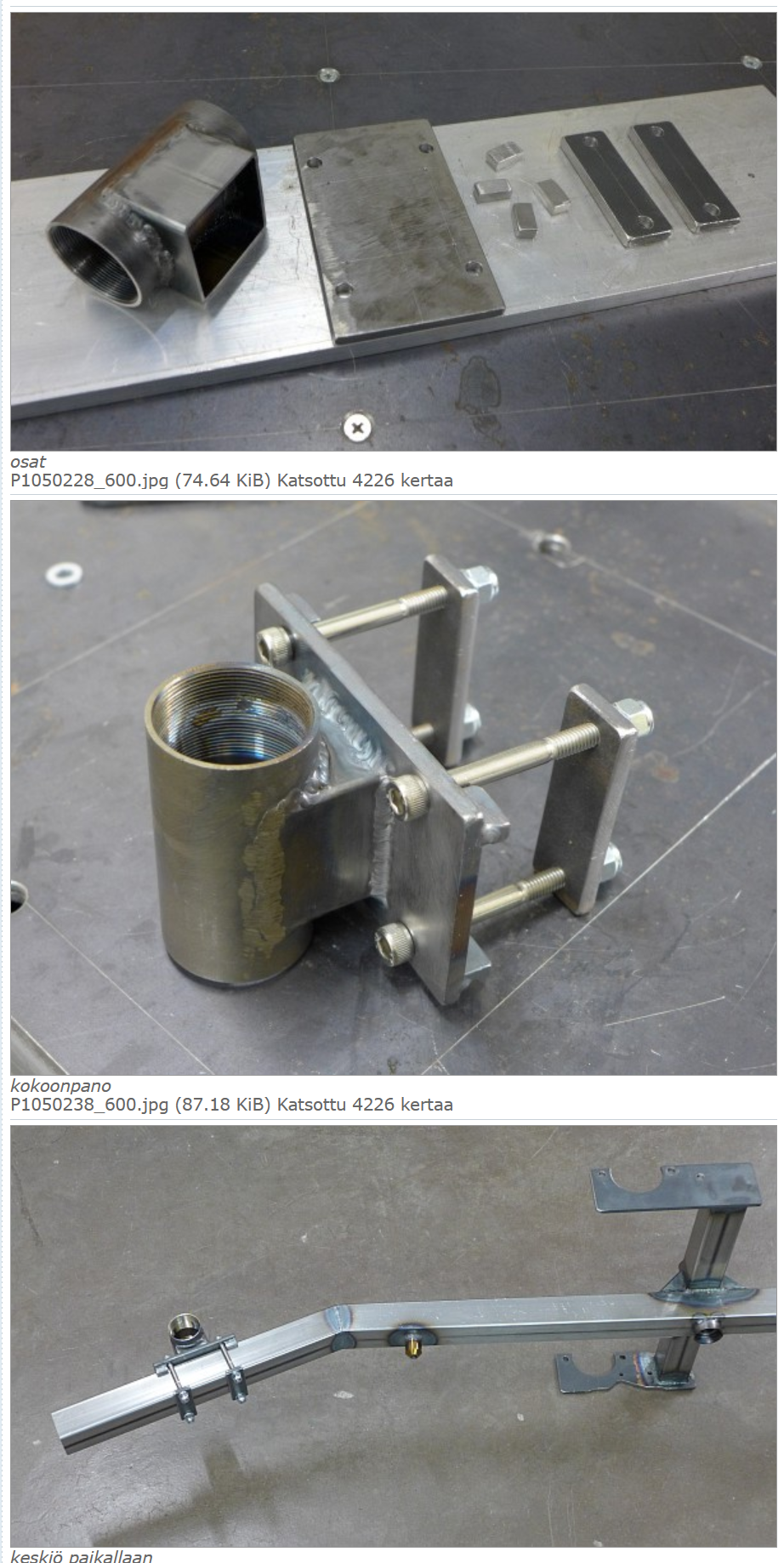 Pengoin varastoa ja tulin siihen tulokseen, että keskiöputken voisi hyvin tehdä 38/34 mm putkesta (emäputkikäyttöön varattua saumatonta teräsputkea, oli vielä jemmassa). Keskiömoottori kun ei kaipaa kierteitä keskiöputken sisälle. Turha siis tuhlata tähän valmista kierteillä varustettua keskiöputkea (jollainen myöskin löytyi yhdestä laatikosta).