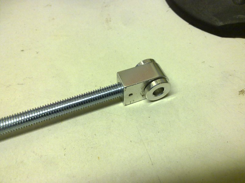 Laitoin halpismaasturin alkuperäisen takajousen osiksi ja ajattelin tuosta alapään silmikasta tehä nivelen tähän nojakin stemmiin. Arveluttaa vain noinkohan tuo kestäisi. Alumiinipalikka on 13.6mm x 20mm ja tuon silmukan seinämävahvuus vain 3mm. Toisessa päässä on M10 kierre. Tuolla saisi välyksettömän stemmin aikaiseksi.