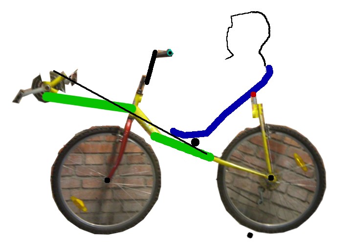 Keksin pitkälle akselivälille ainakin yhden, vielä mainitsematta jääneen edun: Se tekee ajosta tasaisempaa... eikö? Ja jos pää on taka-akseln takapuolella niin, takarenkaan osuessa töyssyyn, lisävarsi etuakselin suhteen vahvistaa töyssyä (pidempi liikematka). Keskellä akseliväliä töyssyt eteen ja taakse ovat liikematkaltaan pystysuunnassa puolet lyhyempiä kuin akselin kohdalla. Lisäksi, jos kuskin on akseliväliin nähden korkealla, niin pieni töyssy aiheuttaa merkittävästi enemmän pituussuuntaista liikettä. ..monimutkaisia nämä polkupyörät :?