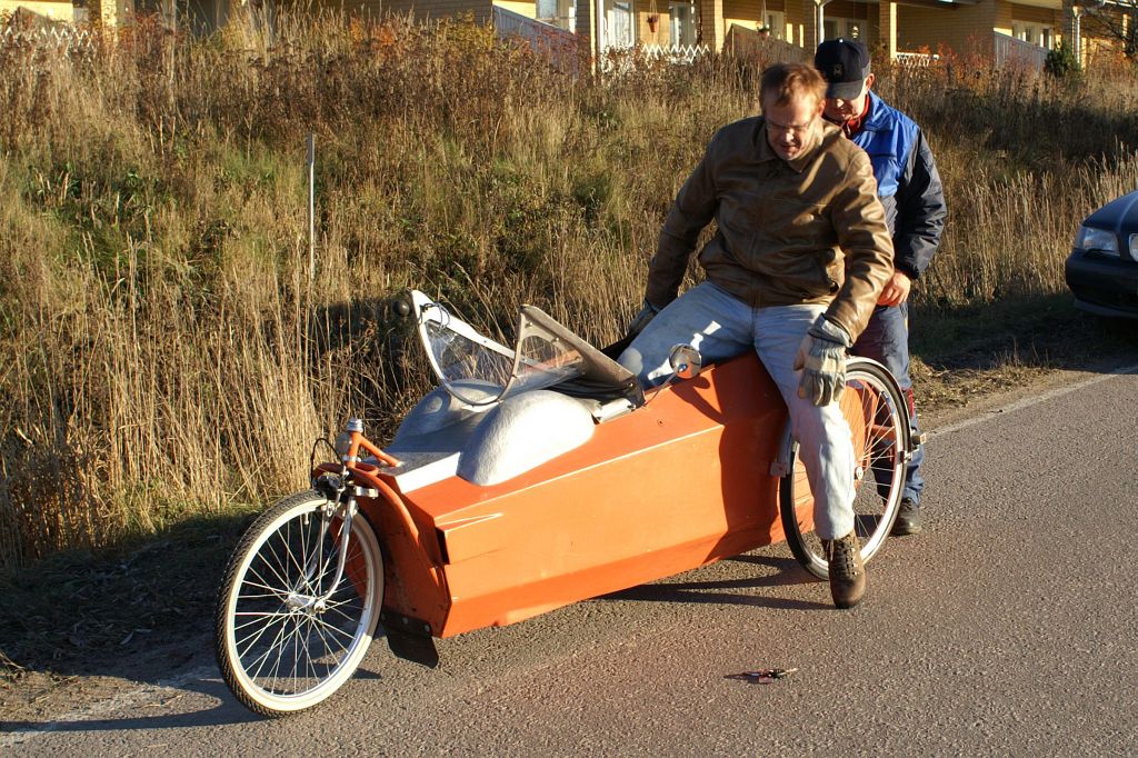 Kyllä tuolla konseptilla (=pitkä delta) saisi ihan käypäisen ja monikäyttöisen kinnerin aikaiseksi. Isoilla kiekoilla (kuten tuo esikuva) ja jousituksella varustettuna toimisi myös esim. huonokuntoisilla hiekkateillä, toisin kuin nämä pikkupyöräiset kaupalliset nykykinnerit, jotka virtaviivaisina toki kulkevat sitten hyvällä asvaltilla kevyemmin isommassa vauhdissa.