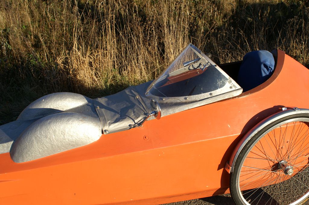 Ovatkohan nuo Le Mans -tyyliset kohoumat polvia vai kengänkärkiä varten! Jos tuohon laittaisi kiihdytysautomaisen kevyen etuakseliston kahdella rattaalla, näkyvyys eteen olisi mainio.