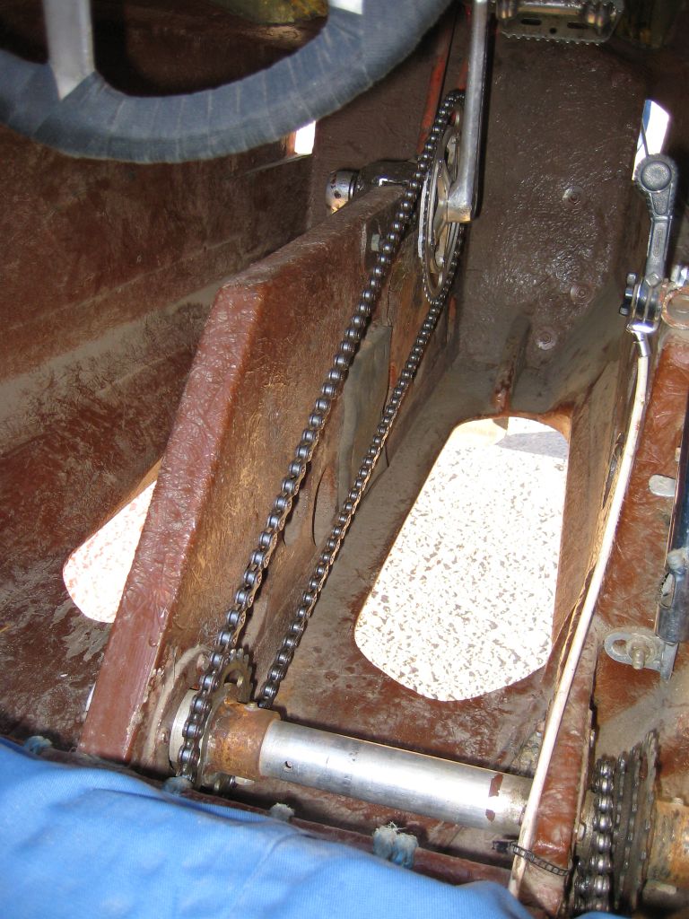 Tekstissä oli, että taka-akseli katkaistiin kääntymisen helpottamiseksi. Pitäisi tehdä rakenne, jossa yhtenäinen pyörivä taka-akseli menisi tavallisten vapaarattaallisten napojen läpi ja oikea pyörä vetäisi oikealta puolen akselin päästä vapaarattaasta.