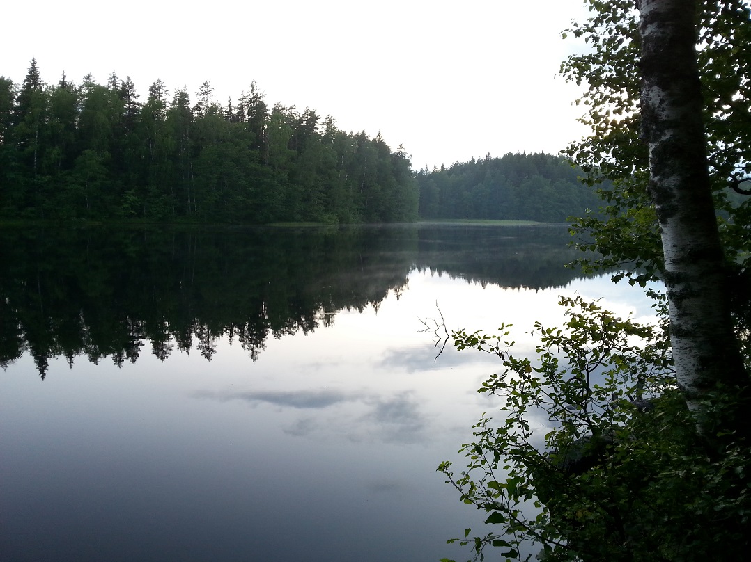Suihkun kautta nukkumaan ja on aika makea näky nyt kun majoitteet on asemoitu niin, että järvi näkyy metsän lomasta ja taivaanranta punertaa auringon jäljiltä... Äänimaisemasta en sano mitään :) tai no, eikö junan ääni ole romanttinen :) vai miten se oli, perämoottori tuo oman saundinsa mutta jännityksellä jään odottamaan miten äänekkäitä konsertista tulijat ovat... Vähän vika päivä täällä mutta vaakakupissa painoi enemmän lyhyt siirtyminen kaupungille aamulla ja jos tuon Aulangon puistikon kautta jos on kuivaa?