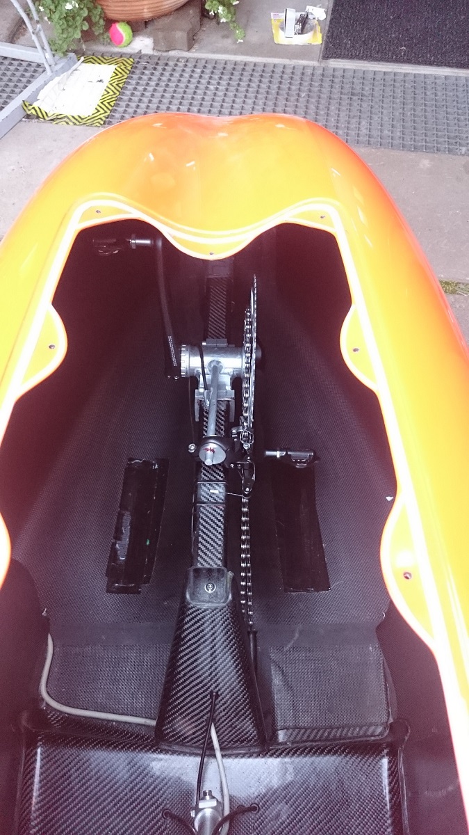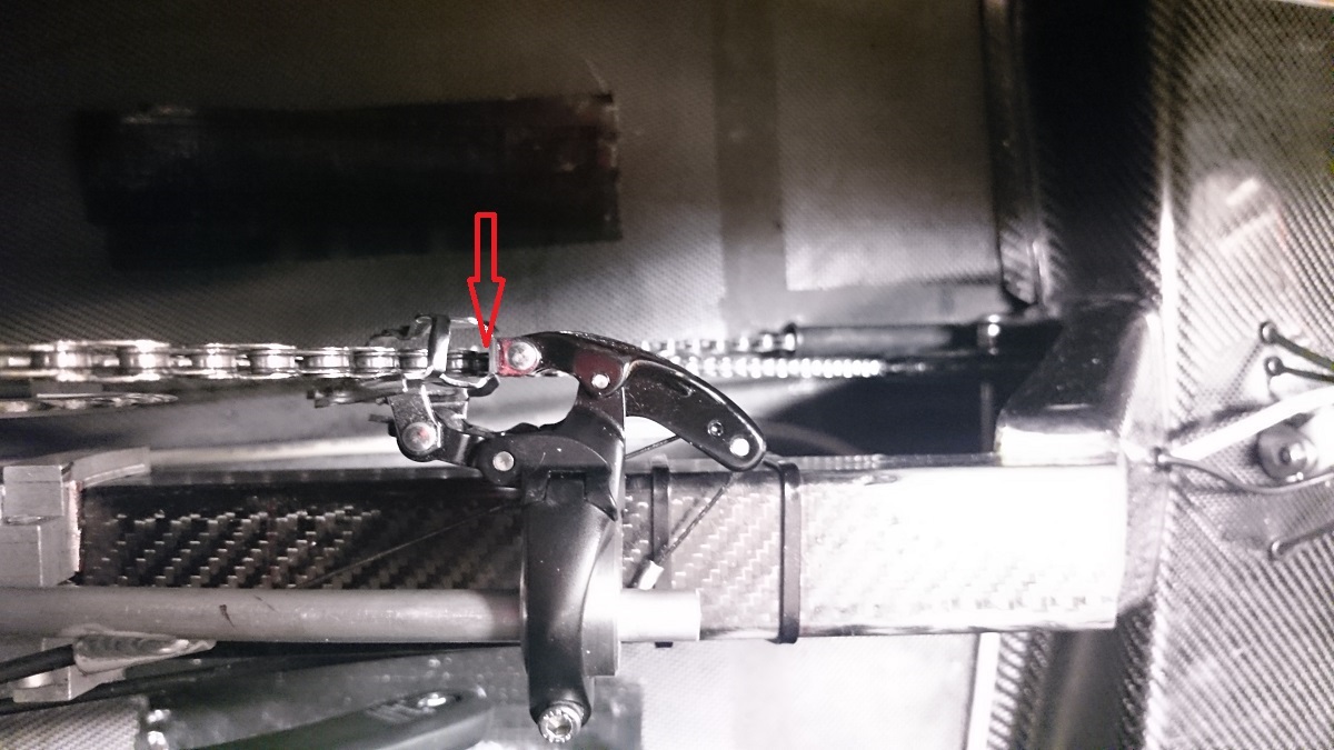 Kovin pienihalkaisijainen akseli tuolla ketjuohjurilla, samoin kiinnityslaipat on ohuet. Ei nää kuvasta, onko minkäänlaista häkkiä ketjupyörällä pitämään ketjua paikallaan? Ketjupyöräkin olisi isompana parempi, kun taittokulma on noin iso, mutta ei näköjään mahtuis.