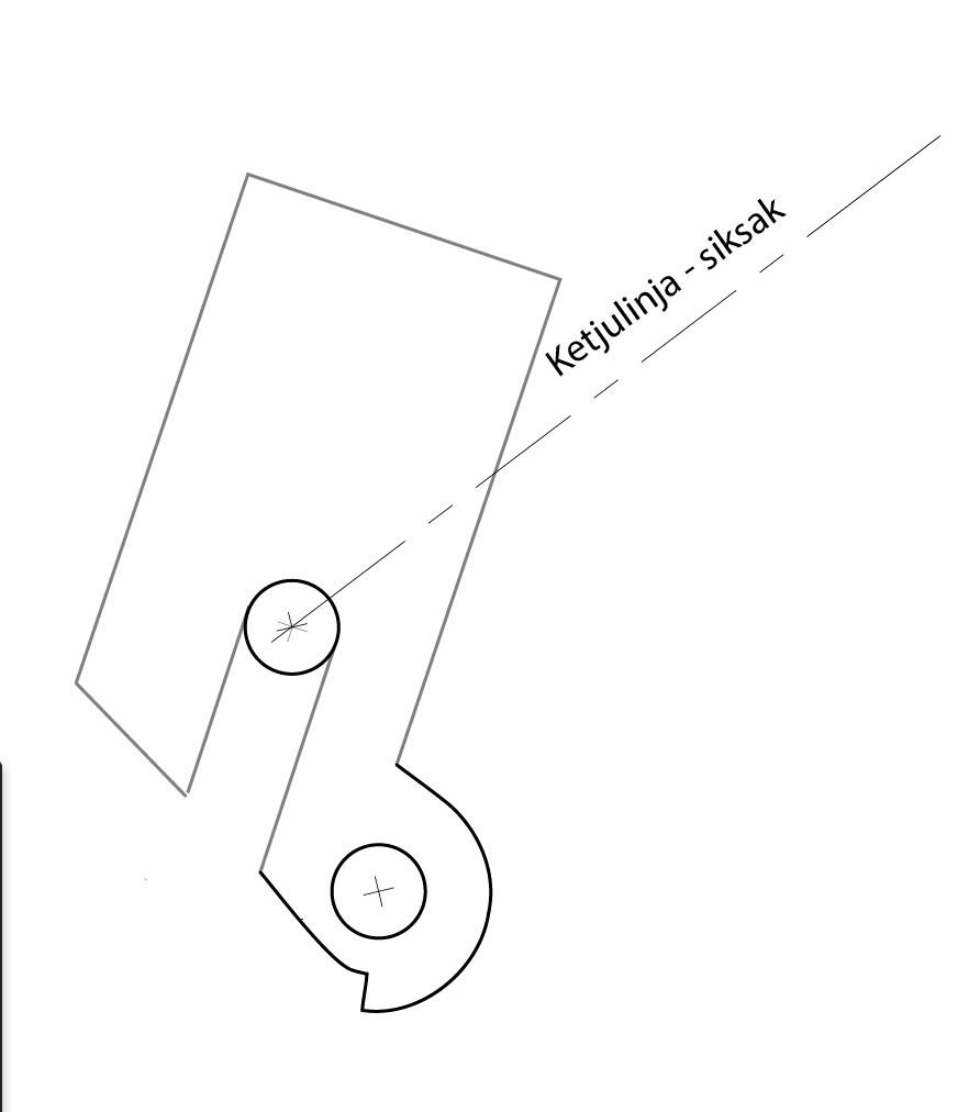 Kyllä se piirustus yrittää sitä kohtisuoruutta mallata. Juu. Idis on se että sitä saisi liikuteltua ja tota jättöä voisi tutkia. Toi on nyt kuuluisan ranskismallin jättö mikä tossa on piirretty. Käänsin hitusen niveltä kun se tälleen illussa niin kätevää :)