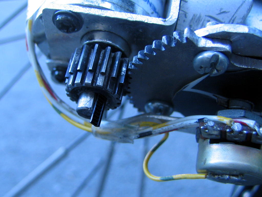 Vaihtajan moottorin akseli on kulunut sen verran ettei pikaliima pidä enää ratasta paikallaan.