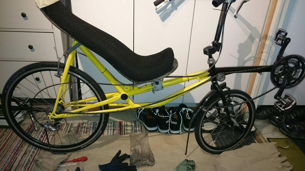 Haasteita on piisannut. Wackyltä ostin vielä uuden ohjaustangon ja muuta hilpettä. Ketjulinjan kanssa on haasteita. Ajattelin lähteä ostamaan ketjuputken Etolasta. Niskatuelle pitää porata reiät. Tehdaspyörän edut tulevat kyllä näkyviin viimeistään silloin, kun aletaan noita pieniä yksityiskohtia miettimään.