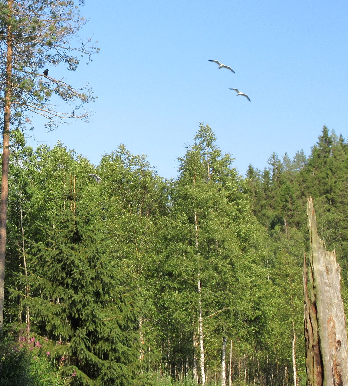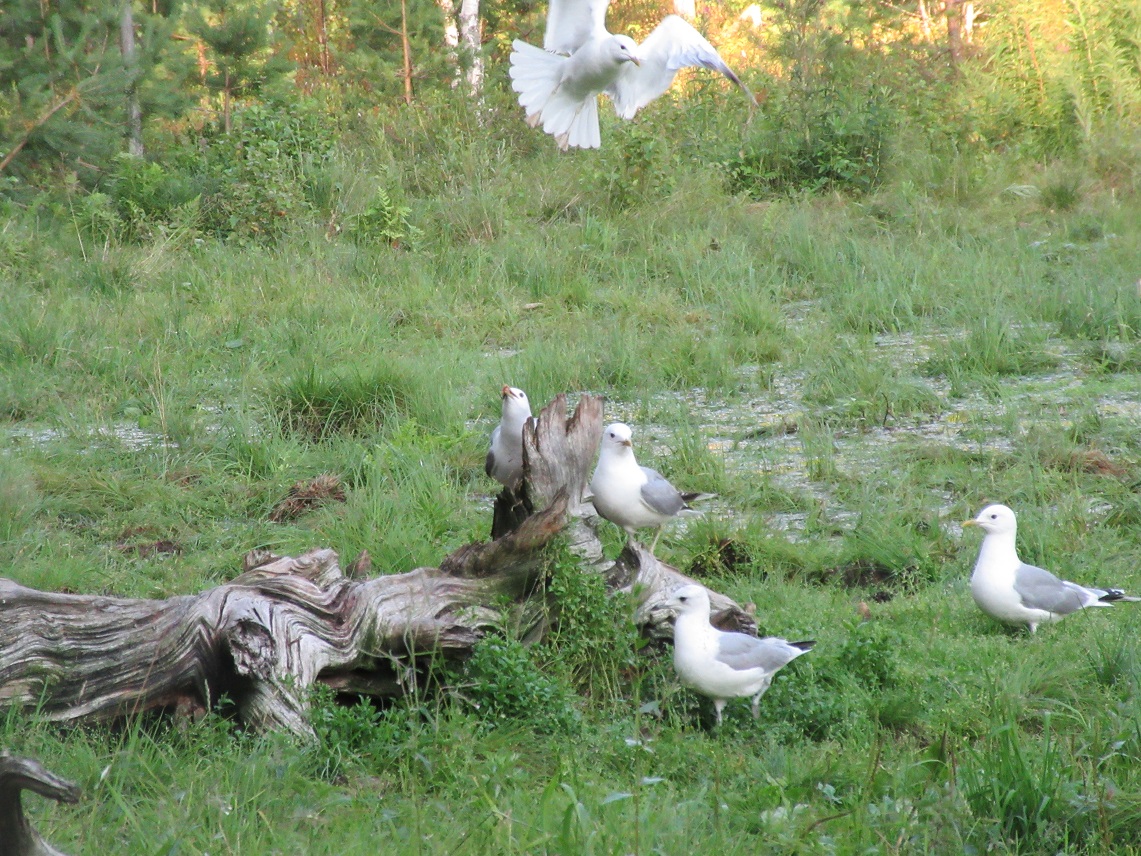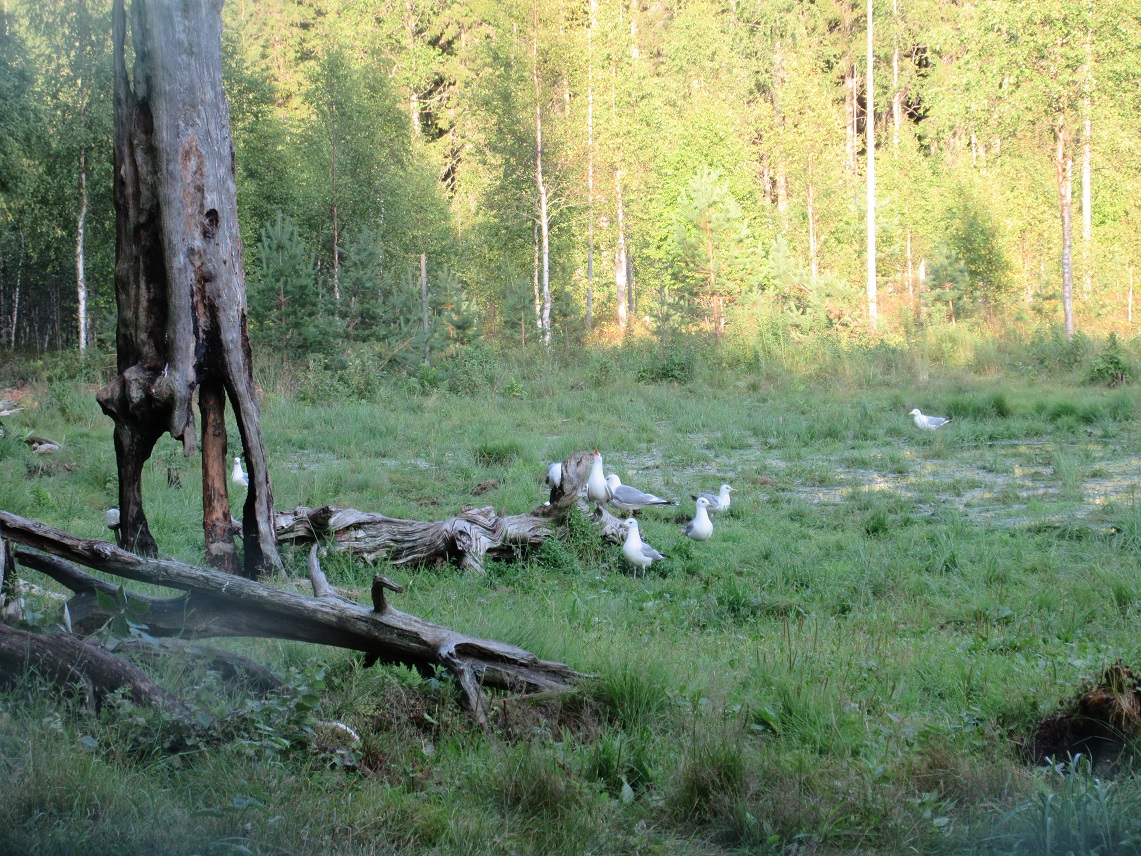 Rauhaiselo jatkui, lokkeja tuli nököttämään kelojen oksille, tuli tikkakin kopauttelemaan nokallaan, joku korppi liiteli välillä ja sorsat pulputtivat rantaruovikossa, aamu valkeni ja aurinko nousi. Kaunista oli, upea istuskella ja katsella.