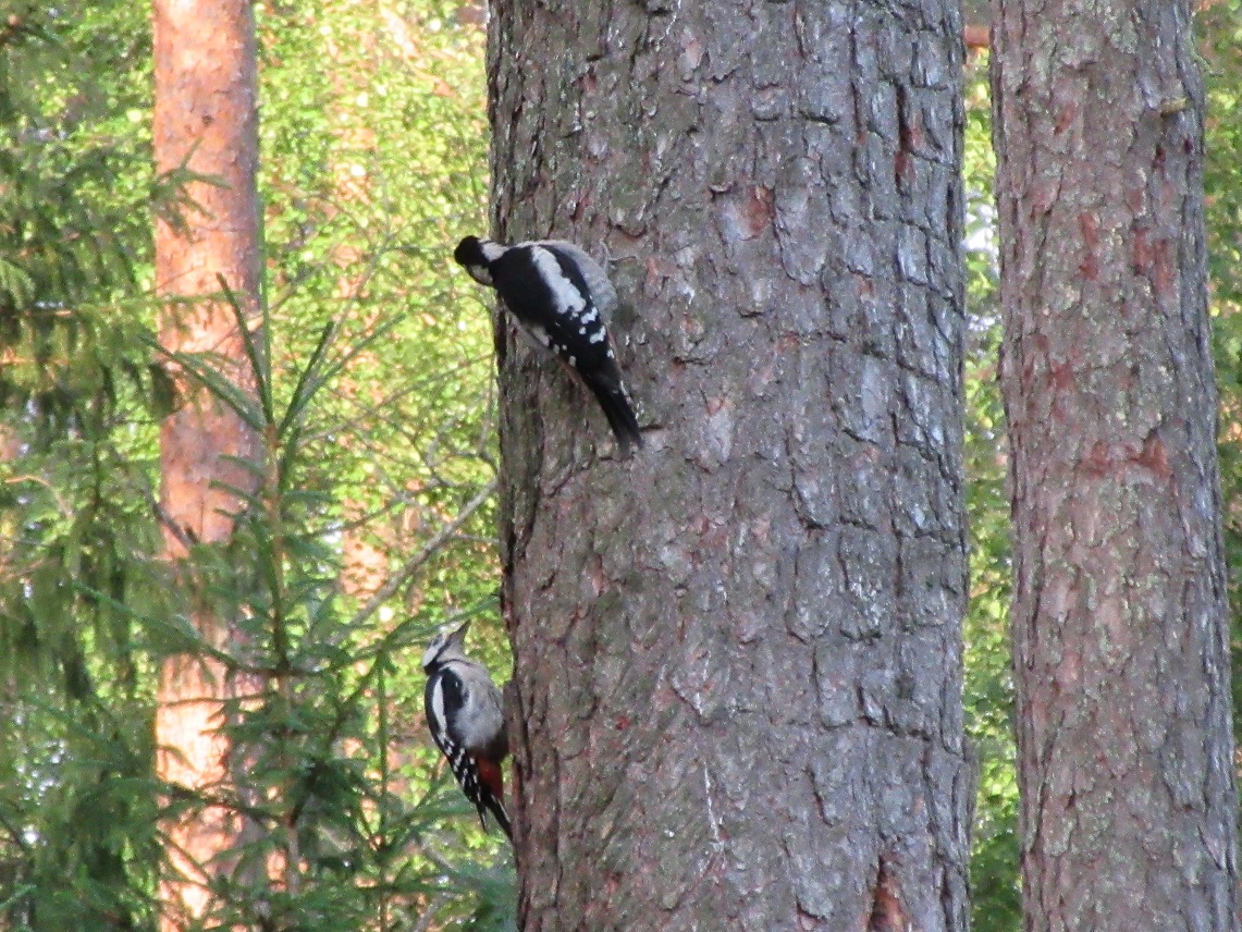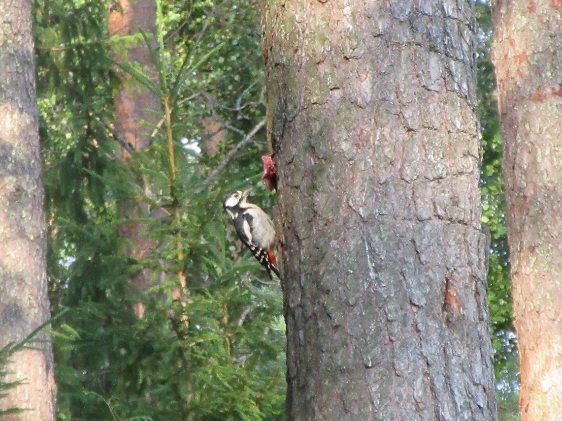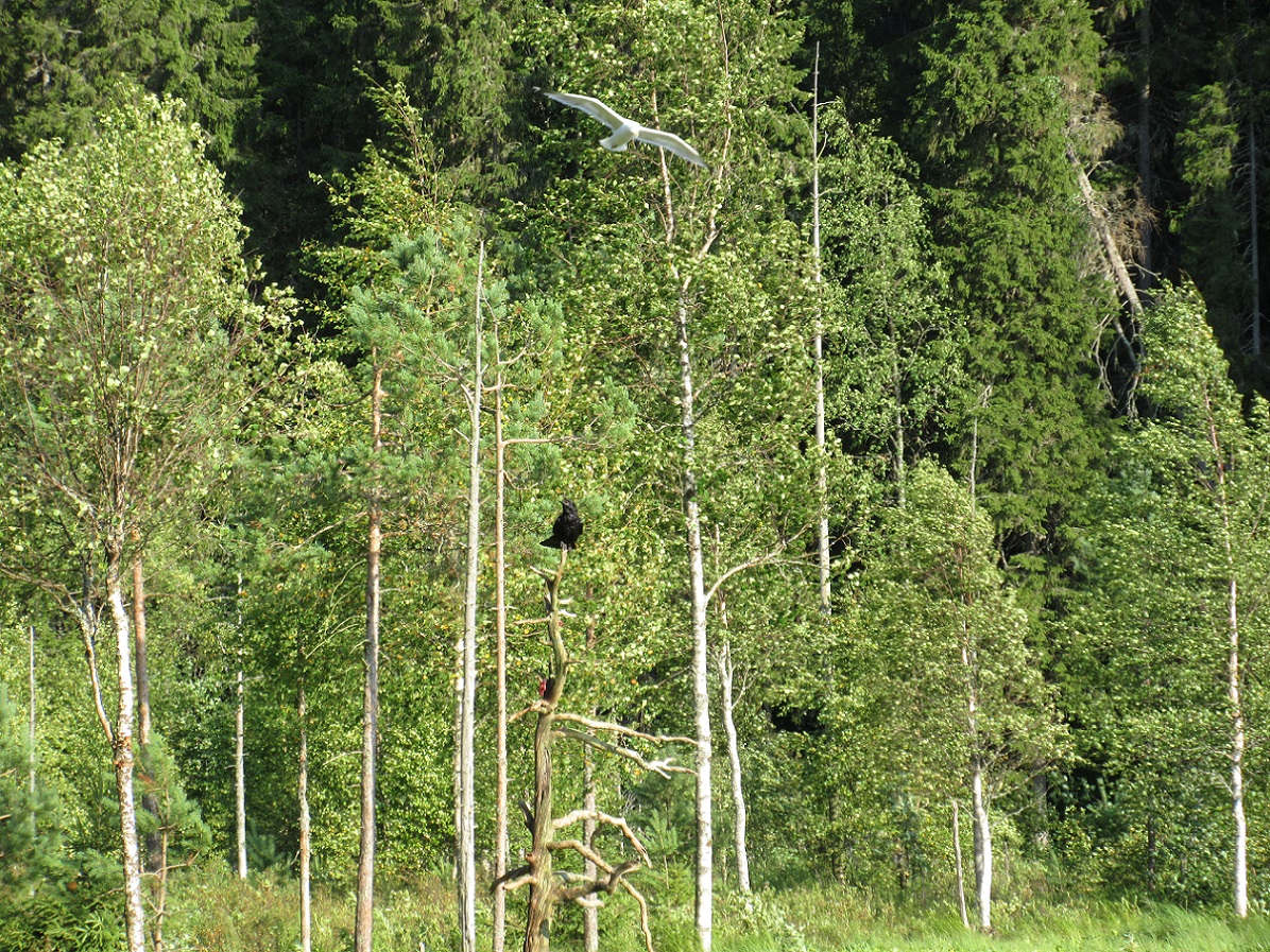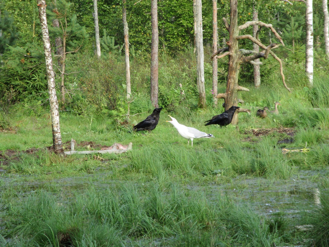 Rauhaiselo jatkui, lokkeja tuli nököttämään kelojen oksille, tuli tikkakin kopauttelemaan nokallaan, joku korppi liiteli välillä ja sorsat pulputtivat rantaruovikossa, aamu valkeni ja aurinko nousi. Kaunista oli, upea istuskella ja katsella.
