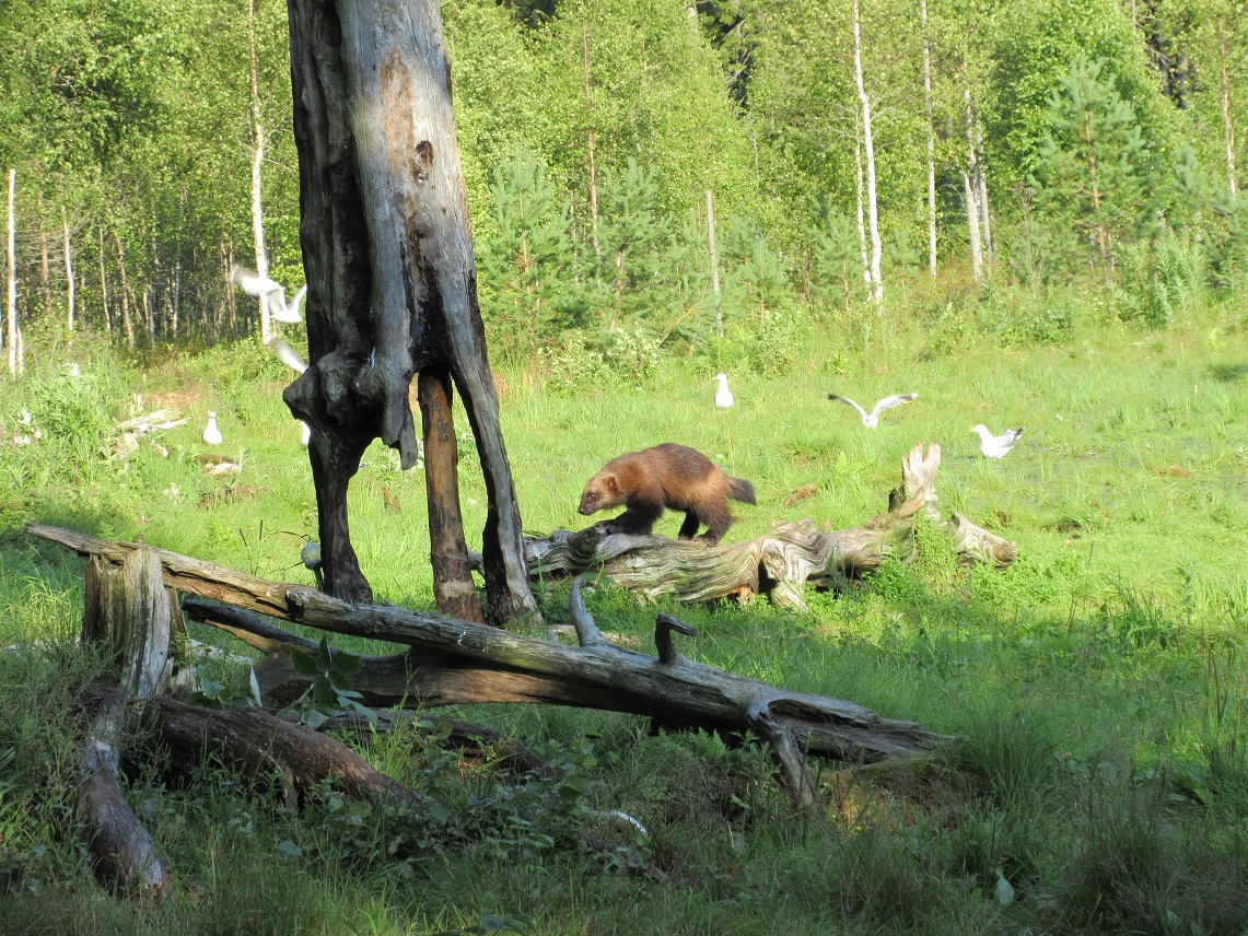 Reilun puolentunnin päästä näkyi samasta suunnasta tulevan pienempi, ruskean värityksen omaava susi ja meni myös aikansa nuuskittuaan menojaan...