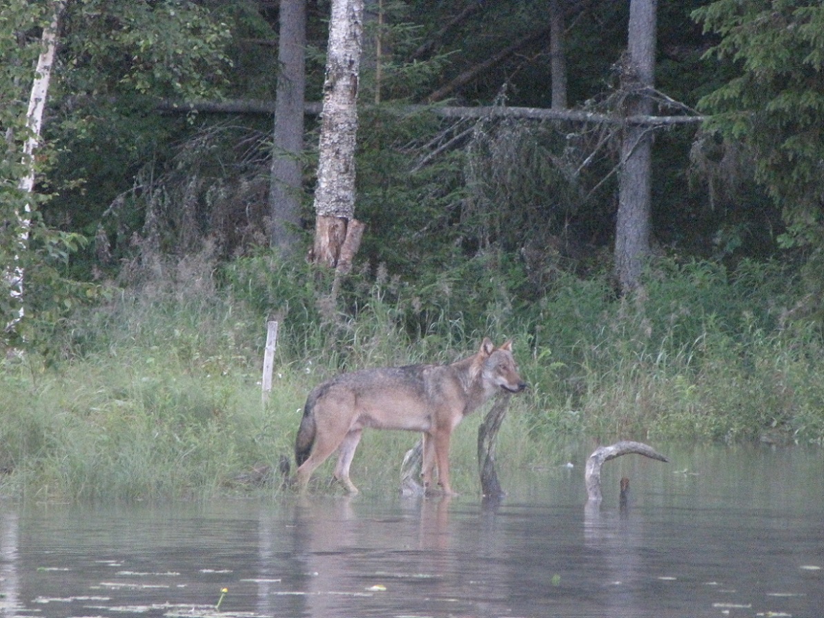 …mutta tuli takaisin meidän puolelle rantaa ja toivoin, että hyviä kuvia Saila saisi. Harmaasta isommasta sudesta ei oikein saanut kun valoa ei ollut tarpeeksi.
