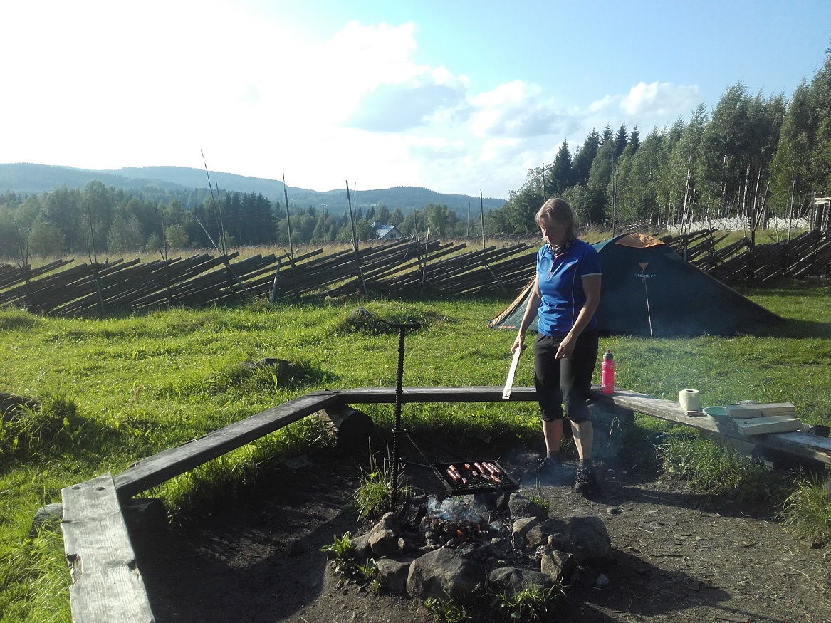 Aika haipakkaa menimme savottakämpille missä oli aamupala odottamassa. Olipa nälkäkin. Puuro täytti vatsaonkalot ja kiilapaloja pureksin leivästä ja mitä lokosia vielä jäi niin ne täytin pullalla ja kääretortulla. Jotta laukku olisi oikeasti täynnä niin valuttelin sinne mehua ja lopuksi kahvia.