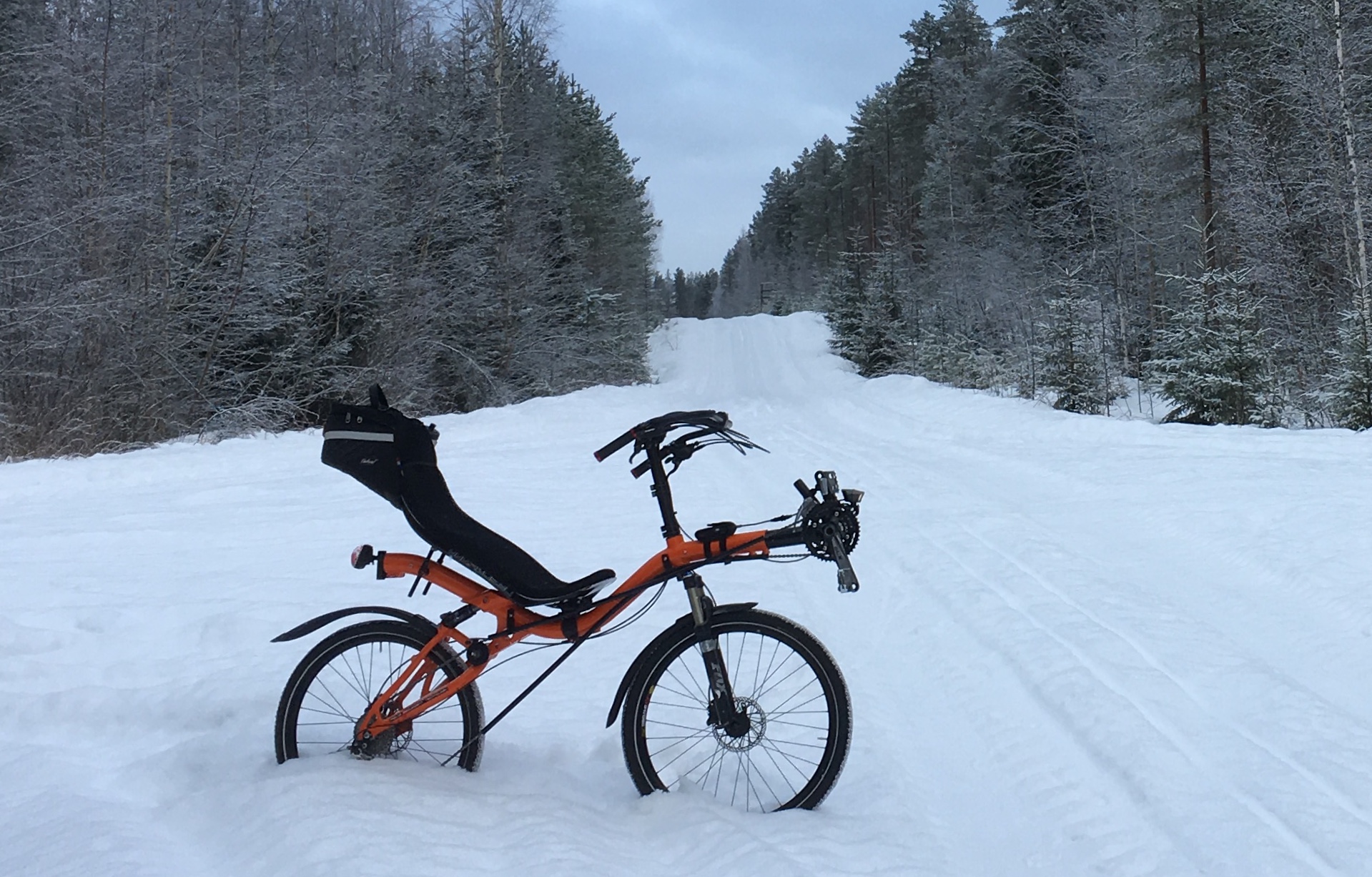 Nonniin, nyt on jo jonkun verran kertynyt talvikilometrejä tälle pyörälle. Täytyy kyllä sanoa, että olen erittäin tyytyväinen pyörään. Aluksi oli vähän vaikeuksia löytää ajoasentoa, mutta sitten, kun sain penkin oikeaan kohtaan ja asentoon, niin ajaminen alkoi tuntua tosi hyvältä. Stemmiä olen muutaman kerran katkaissut lisää ja nyt tuntuu, että se on aika hyvällä kohdalla. Vielä voisi ehkä koittaa pari senttiä katkaista, ja jos menee liian lyhyeksi, niin sitten sen voi vielä säätää takaisin tähän samaan kohtaan. Kaiken kaikkiaan ajotuntuma on tosi hyvä. Ainut negatiivinen asia on oikeastaan se, että se on aika korkea. Hyvältä tasaiselta paikalta liikkeelle lähtiessä se ei haittaa, mutta jos on vähän vaikeampaa maastoa, liukasta tai ylämäki, niin liikkeellelähtö on paljon hankalampaa.