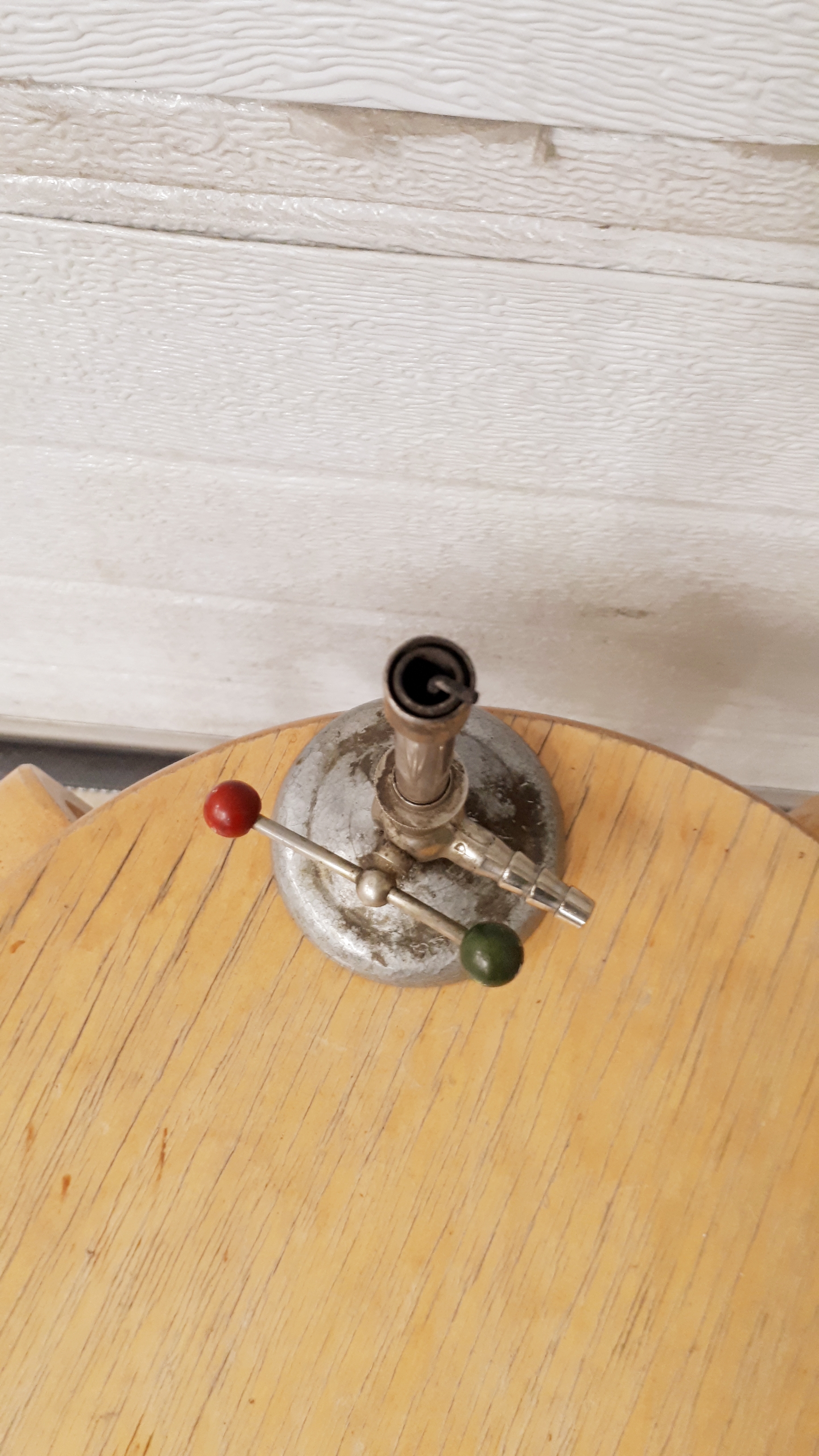 Se on Bunsen -poltin. Ilmeisesti saksalaisen keksijänsä mukaan. Tuttu kemian ja mikrobiologian laboratorioista. Polttaa yleensä nestekaasua. Helppo säätää ilma/kaasu -suhde stökiömetriseksi kiertämällä polttimen runkoa.
