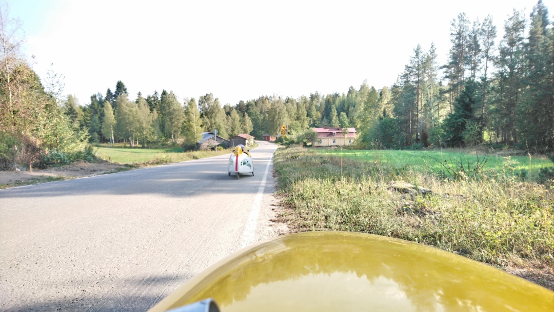 Mitä pitempään matkaa on taittanut niin sen vähemmän väsyttää ja pyörä alkaa kulkea vaikka alun myötätuuli vaihtui vastatuuleksi, on se ihmeellistä tuo nojapyöräily