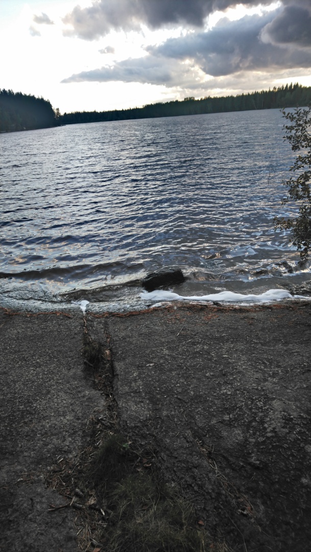 Kappaleenmatkaa taas eteenpäin ja päädyimme levähdysalueelle missä oli uimaranta. Tämän olin katsellut etukäteen kartasta ja hahmotellut, että olisi sopivalla etäisyydellä yöpaikasta jos haluaa vähän peseytyä ja Saila tykkää uida ennen iltaa. Mennessä aurinko oli pilvessä ja näytti kylmältä mutta auringon tultua esiin ei edes tuuli tuntunut kylmältä, vesi oli vielä todella lämmintä. Vähän sellainen hylätty fiilis jäi rannasta vaikka (ainakin joskus ollut) on virallinen uimaranta.