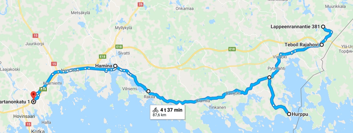 Lappeenrantaan oli hyvät pyöräilyopasteet ja kyltit, siitä pojot. Muuten oli keskiaikainen meininki eli mopot oli ohjattu samalle väylälle johon muutama kolarikohta oli rakennettu kun väylä poukkoili puolelta toiselle. Mieluummin virittäisin mopon kulkemaan 60 kmh ja ajaisin autotiellä kuin 40 kmh kevyenliikenteenväylällä. Muuten kyllä upeissa maisemissa kulki tie, jos Lappeenrannan seutuvilla ajelee niin kannattaa ajella Taipalsaarentie.
