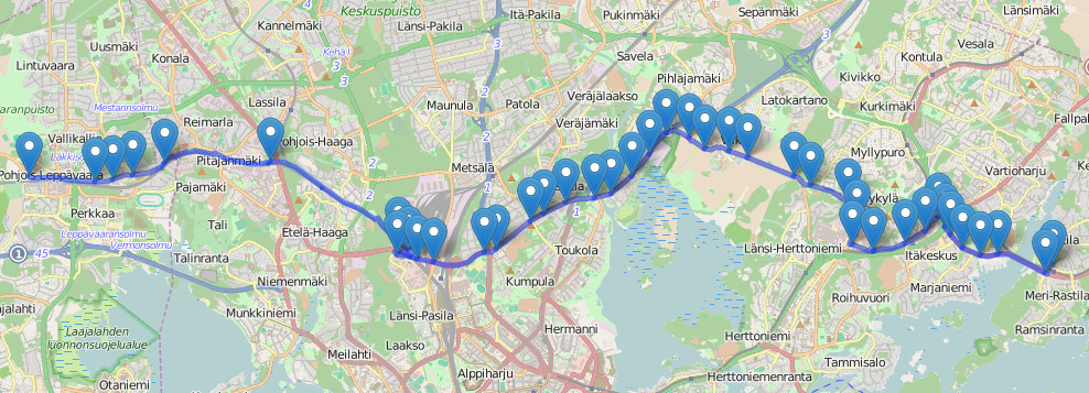 Tärkeitä paikkoja on siirtyminen radanvarteen mäkkylän aseman kohdilla, jossa aseman kohdilla on valot suojatien kohdalla ajoradalla (ei varsinaisesti mitään tien risteystä) niistä pitää nousta kelville joka hetkeä myöhemmin koukkaa viistoon oikealle radan varteen. Radan seuraaminen siitä eteenpäin on suhteellisen helppoa. Pieni varoitus Pitäjänmäen aseman kohdalla on pari töyssyä joissa pohja nappaa melkovarmasti, mutta muuten reitti pitäis olla aika huoletonta ajoa koska ajoradan kanssa ei ole ristyksiä ja radan puolta ei tarvitse vaihtaa missään kohtaa.