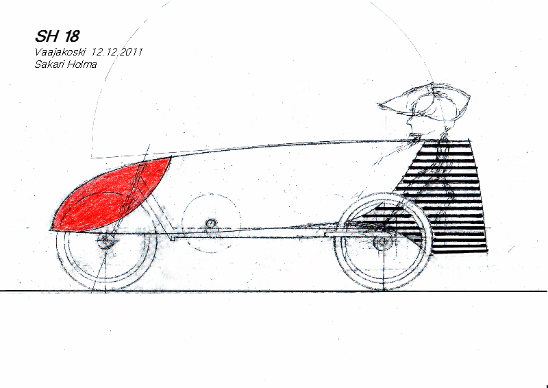 Olen kovasti pähkäillyt miten korin SH18:aan tekisin. Takahaarukoiden, kampiakselin ja -v-jarrujen lävistykset tuottavat aika tavalla ongelmia sivulevyjen asennuksissa. Huoltoa varten on oltava mahdollisuus päästä käsiksi eri osiin. Ajokin käänteleminen ympäri vaatii tukevaa runkoa vanerin alle.