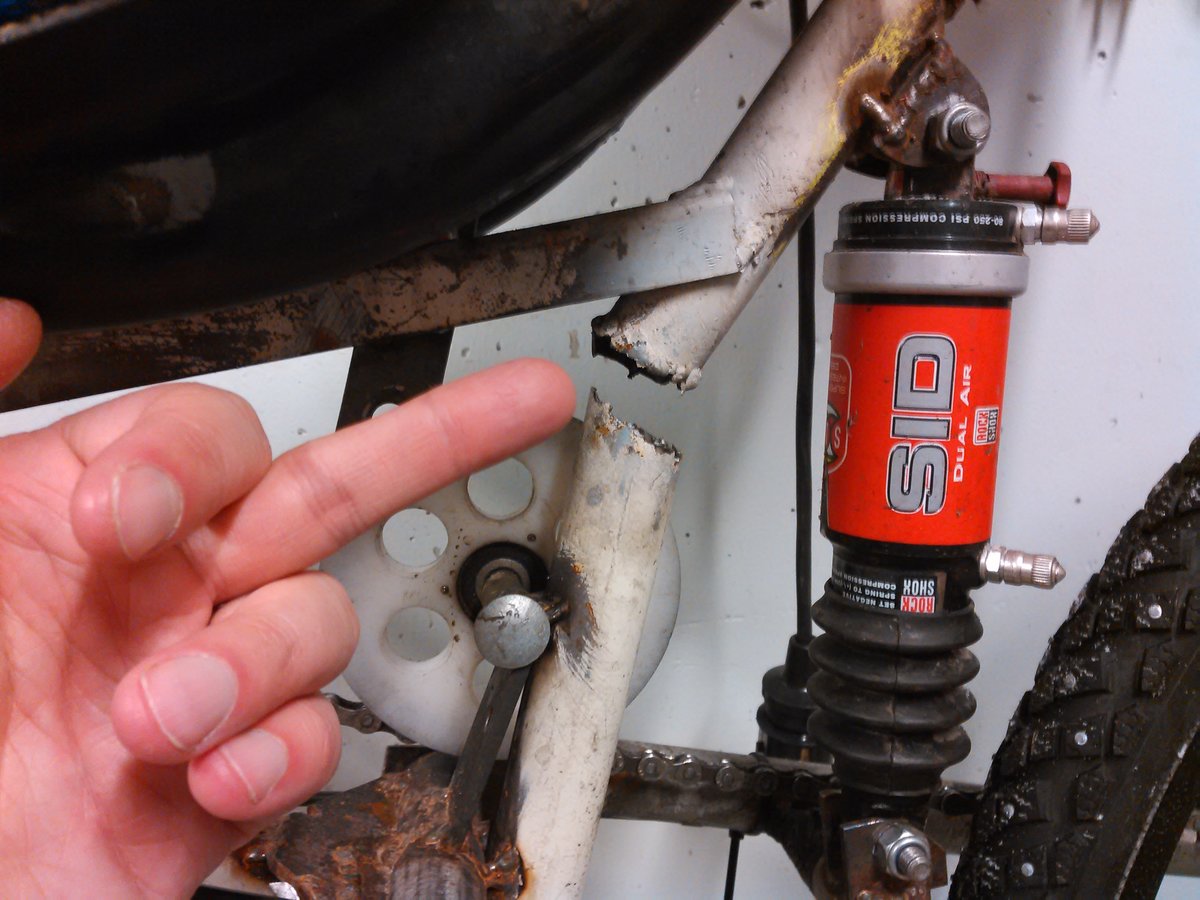 Onneksi olin juuri pysähtynyt kun kuului pikku pamahdus ja perä putosi alas.