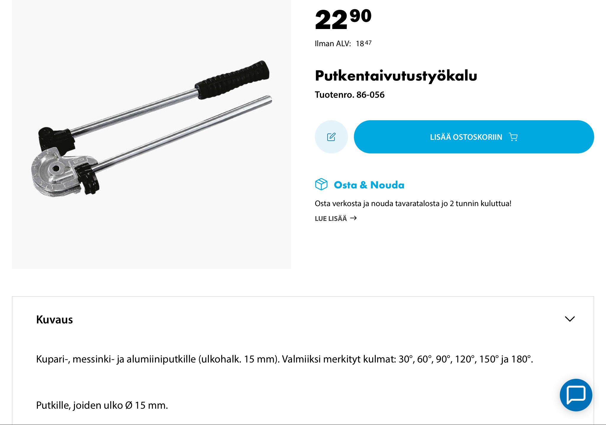 Jos tuommoinen 15mm alumiiniputki käy kehikoksi, niin aika kohtuuhintainen on taivutin.