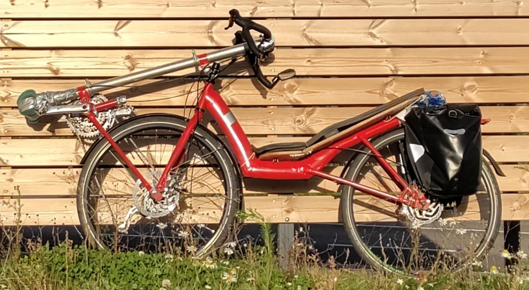 Päivitetäänpä vähän kokemuksia, kun tämä pyörä on ollut talviteloilla jo hetken. Projektista tuli oikein onnistunut ja tarpeisiini sopiva. Pääsen tällä varmasti kovempaa kuin pystypyörällä. Varsinkin vastatuuleen on hauska ajaa, koska sitä ei tunne juurikaan pystäriin verrattuna. Runko on jäykkä eikä polkuvoimia tunnu menevän hukkaan.