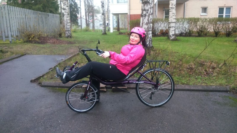 Nyt on meidänkin perheessä kaksi nojapyöräilijää :) Kuvan nainen päättää itse foorumille liittymisestä aikanaan, mutta sain luvan laittaa kuvan jo tähän ketjuun :)
