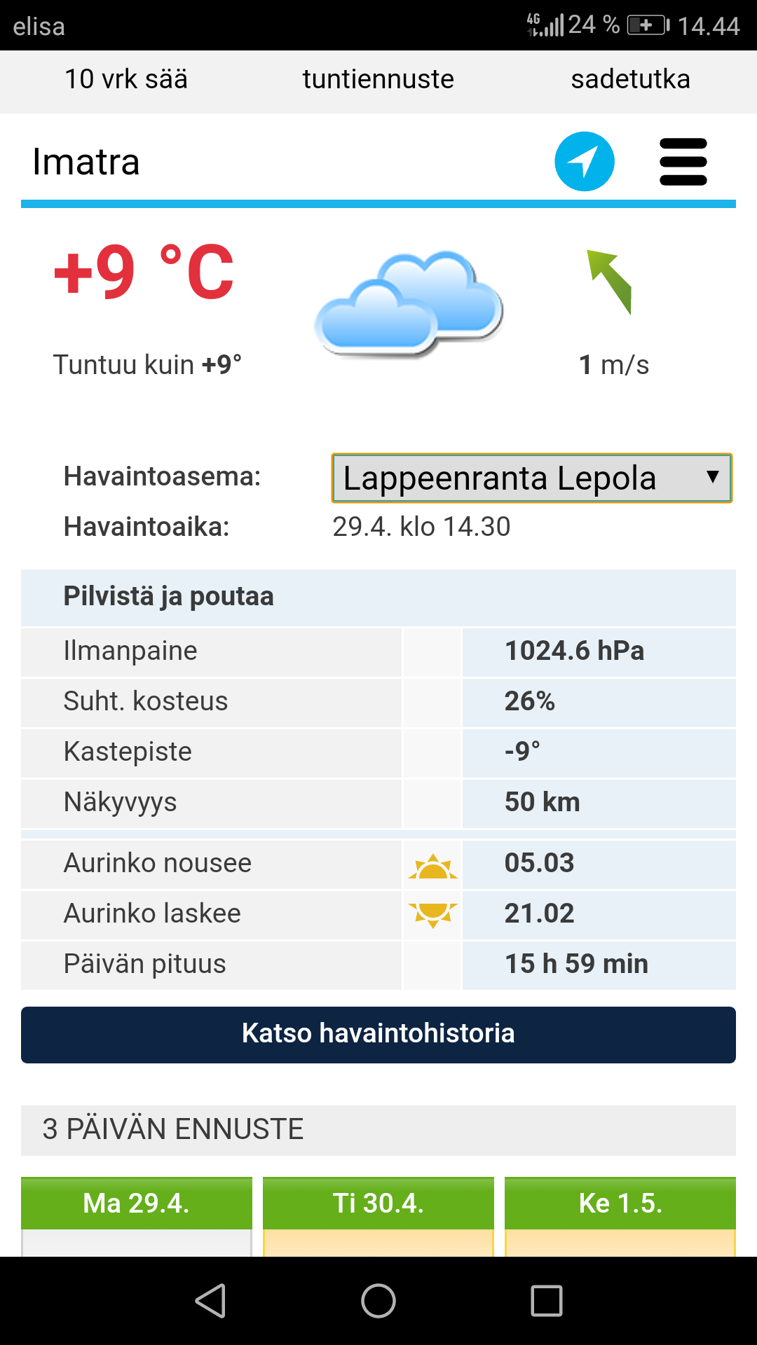 Oon itekin seuraillu lähipäivinä kastepistettä, se ei päivän aikana kauheesti liiku vaikka lämpötila nousee päivällä. Pikemminkin se voi laskea päivällä kun kosteuskin vaihtelee hurjasti, aamulla voi olla 75-85%suht kosteus ja päivällä kolmenkympin huitteissa.