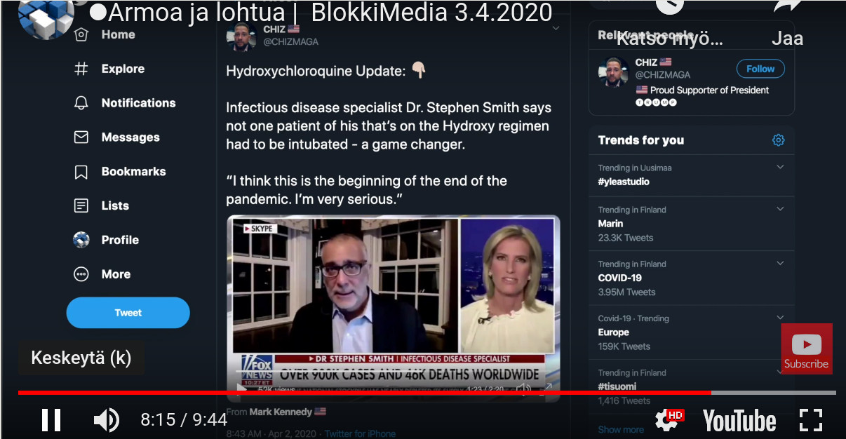 ...ja muille minimaalisen pienille kanaville. Hankalaa kuitenkin on, koska pienet mediat eivät saa viranomaisilta ajantasaista tietoa, vaan aina on joku hallituksen toimia puoltava agenda päällä myös viranomaisilla. Jonkunlaisessa fasismissa tältä osin elämme.