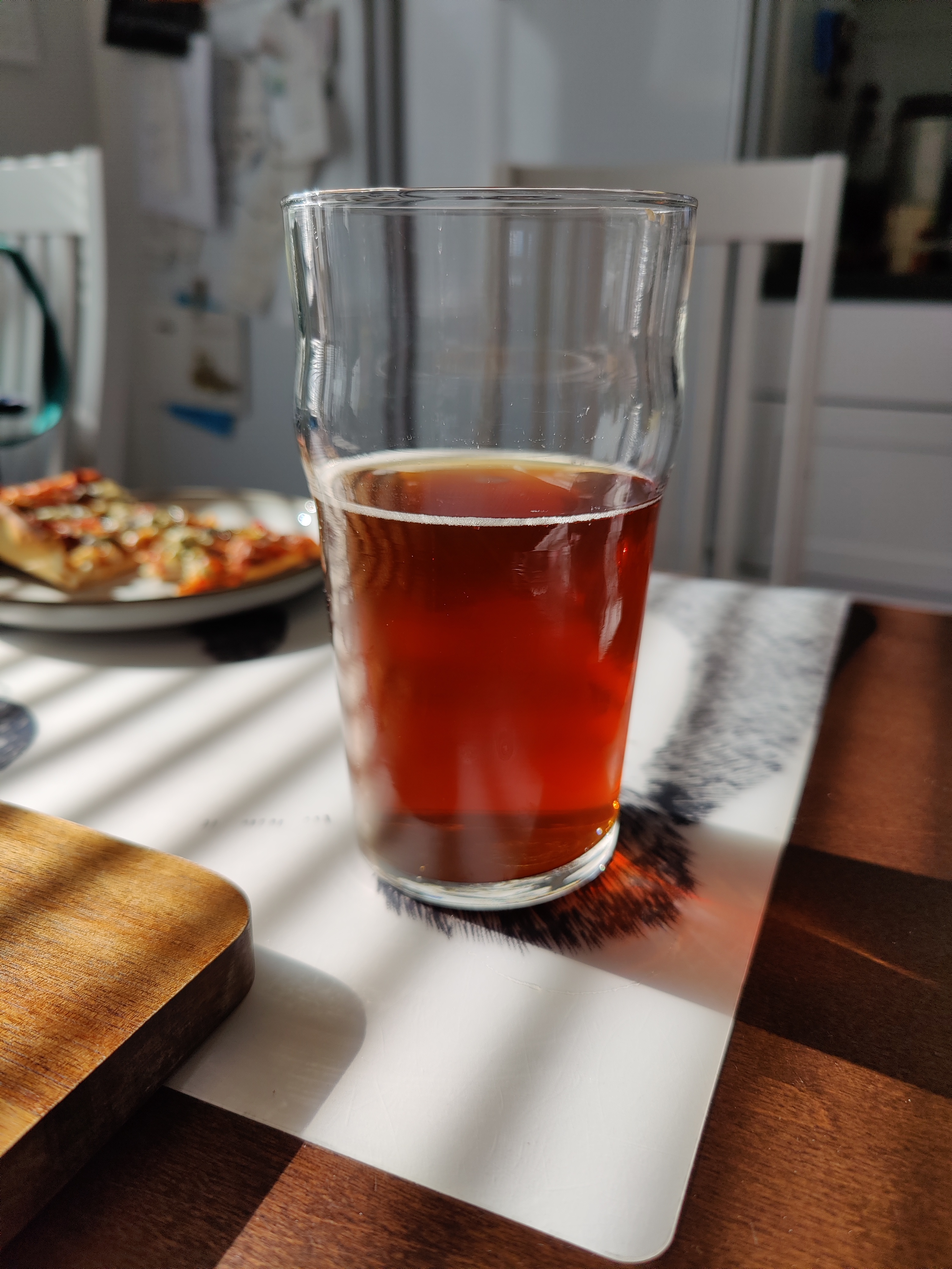 Ollut pullossa vasta kaksi viikkoa. Pullo poksahti iloisesti avatessa, eli ilmatilassa on kovasti hiilihappoa, mutta se ei ole vielä penetroitunut juomaan kunnolla. Aika hoitaa.