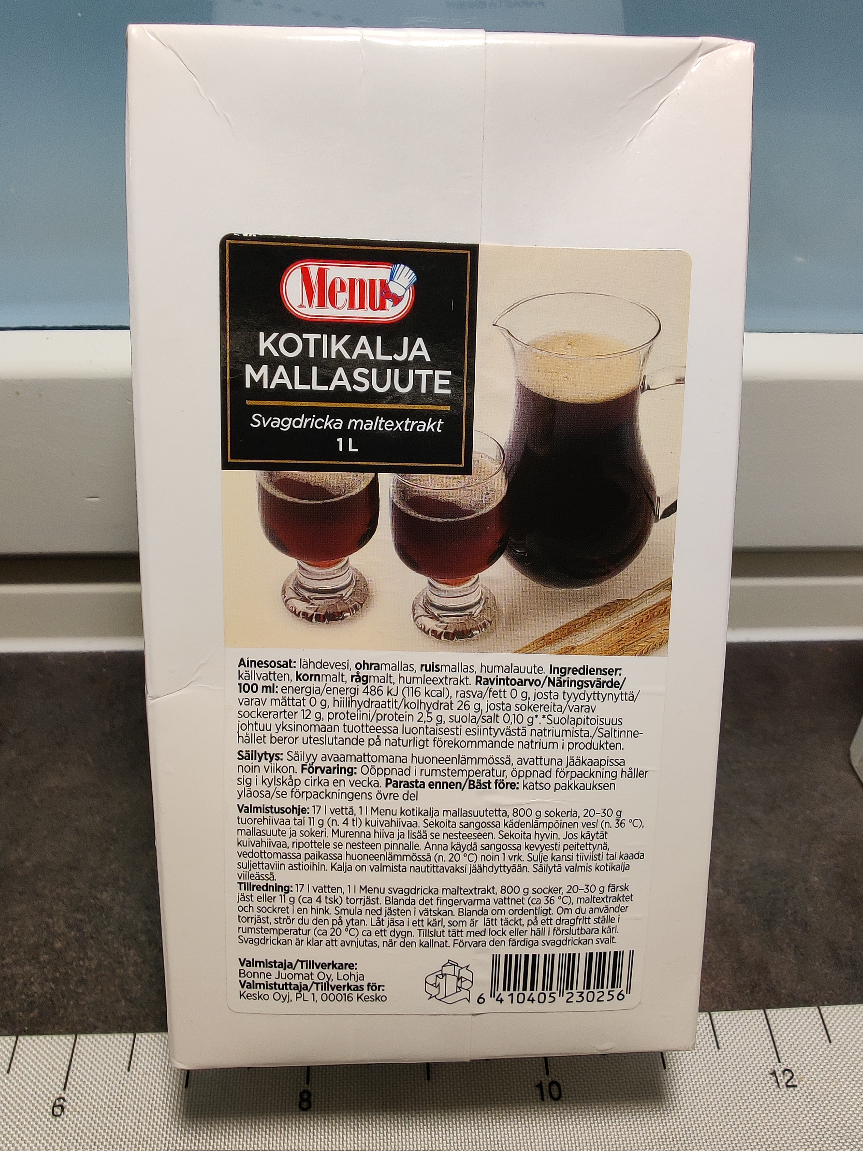 Yksivaihemäskäsin 500g kaljamallasta ja löin ominaispainomittarin rikki pesualtaan kulmaan. No nyt ei päässyt sitten mittaamaan irtosiko kaljamaltaista sokereita.