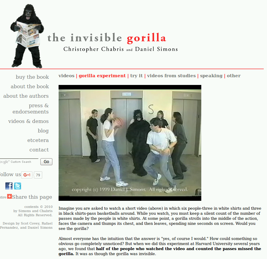 Eli jos palataan siihen kuljettajaan, joka ei ollut katsonut eteenpäin yli 30 sekuntiin, mutta hänen aivonsa kertoivat hänelle, että mikään ei todennäköisesti ole muuttumassa. Hän ei varmaankaan tajunnut sitä, miten pitkä aika siitä oli, kun hän oli katsonut eteenpäin. Hän jopa saattoi ajatella vilkaisseensa eteenpäin ennen matkan jatkamista, koska hänen mielikuvassaan risteyksen kartta oli niin voimakas. Tietenkin tämä karttakuva oli vanhentunut, eivätkä tiedot olleet ajantasaisia. Lisäksi siinä oli edelleen iso moottoripyörä ja kuljettaja aivan hänen edessään. Mutta koska moottoripyöräilijä osast epäillä, niin hänellä on vielä molemmat säärensä tallella.