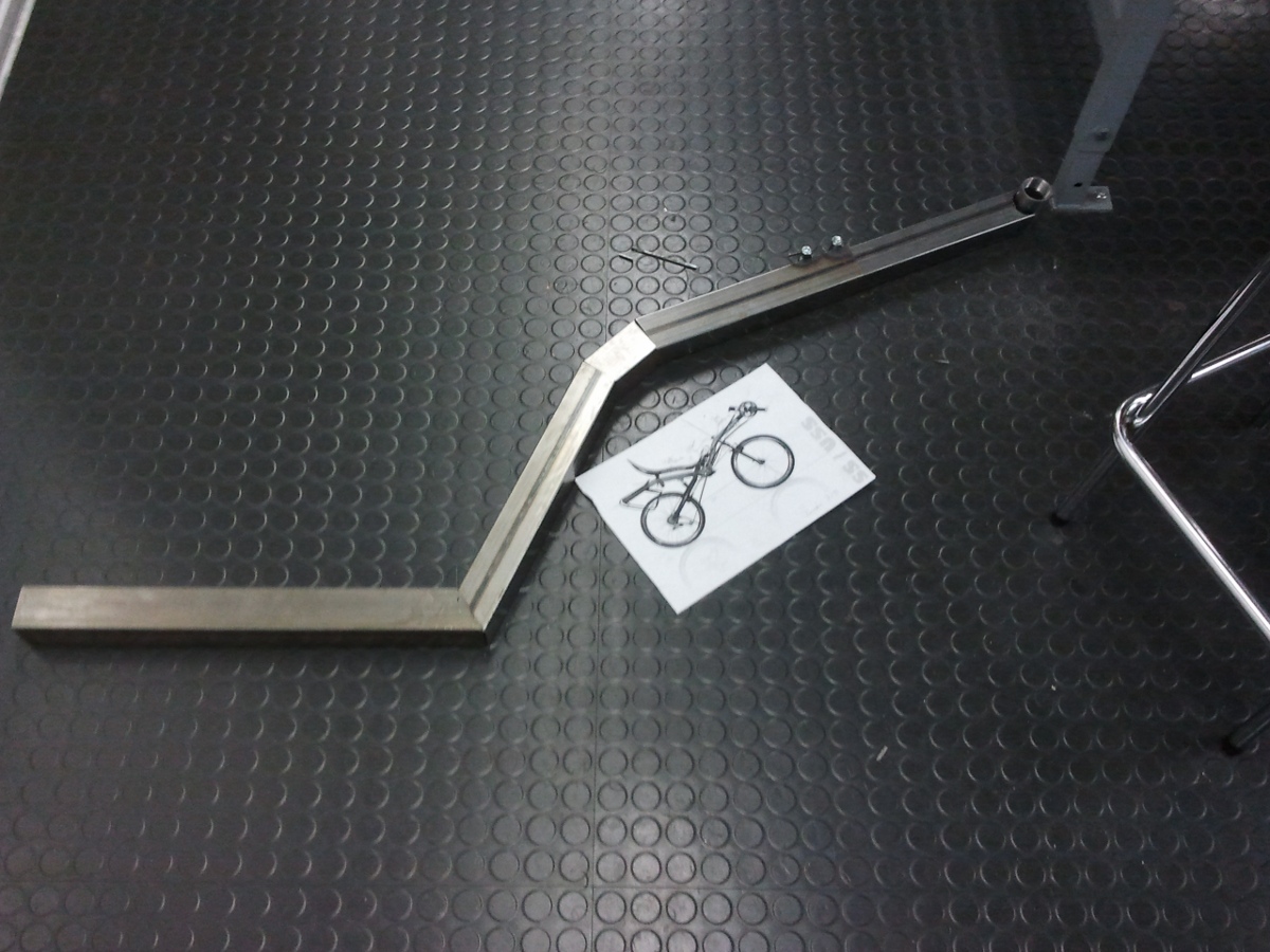 Edistystä taas. Heppailin rungon läjään ja sommittelin ohjaustangon taittomekanismia, sekä hitsasin lopulliset saumat puomin ja keskiömuhvin välille.