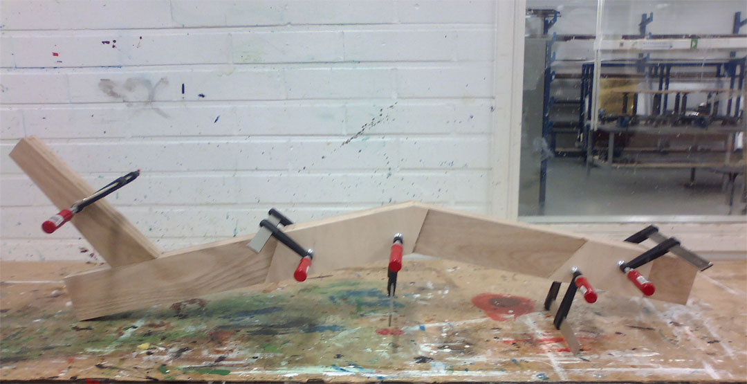 Runko sivusta, kun siihen on liimattu vanerivahvikkeet