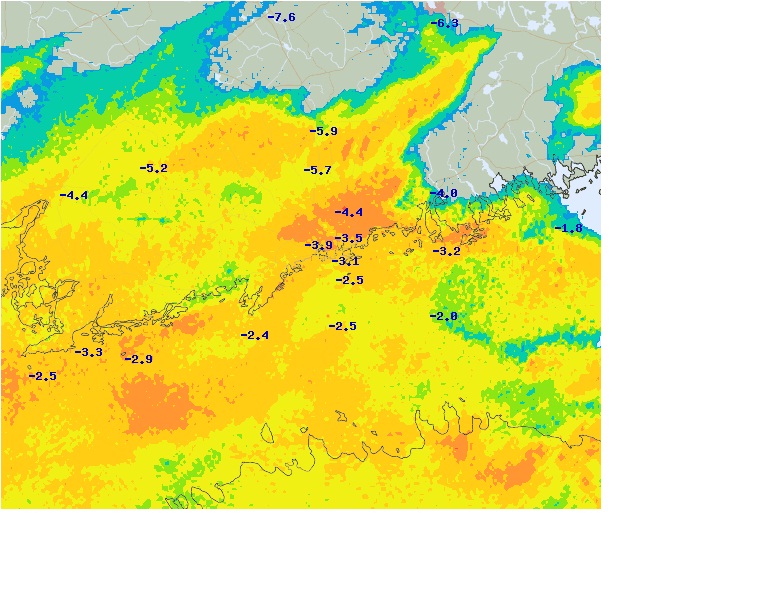 Tutkakuva pääkaupunkiseudulta tänään klo 12.15: