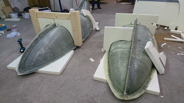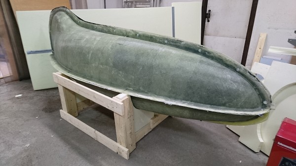 - tulevaa korin laminointia varten on rakenneltu tukipukit muottien alle