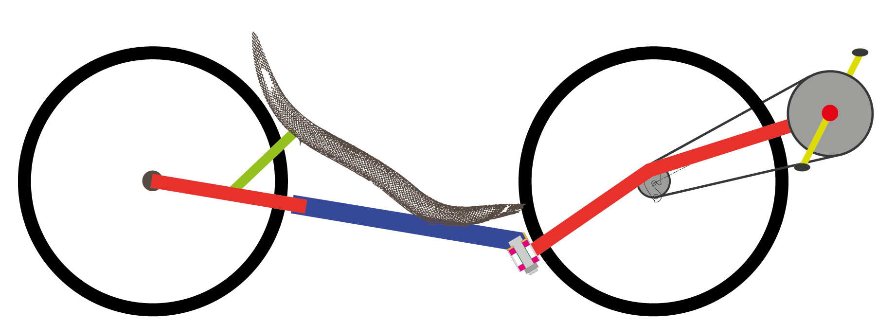 Suurempia voimia vaativa etu-taka-suunta ei välttämättä. Tuon läpi menevän ruodon tarkoitus on estää runkoputken alapinnan lommahtaminen jarrutuksessa.