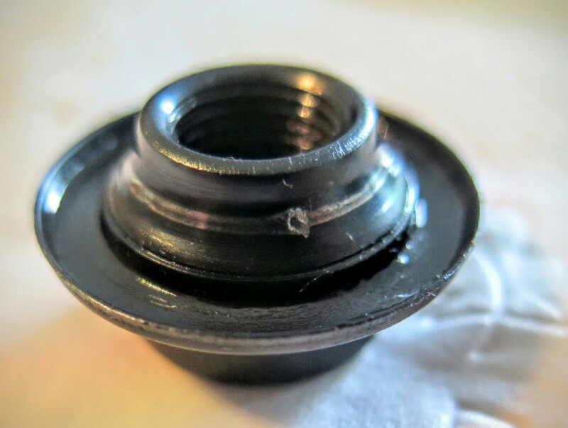 Kuvasta päätellen kuulanpidinrengas on ollut väärin päin ja sen peltirunko raapinut tuon jäljen.
