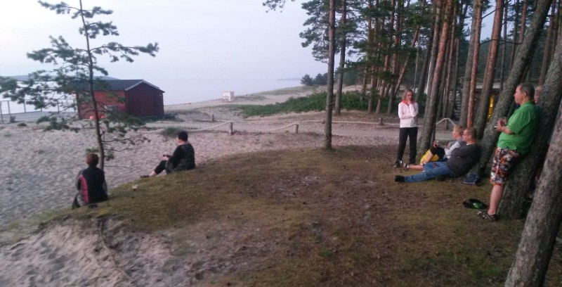Porukka koolla rannalla