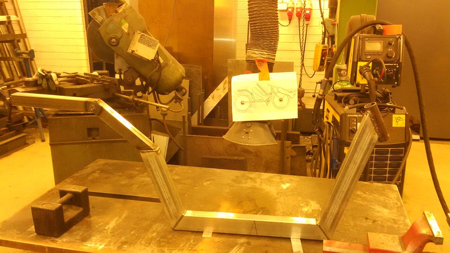 Hännän lisääminen runkoon oli helppoa mainiolla hitsauspöydällä.