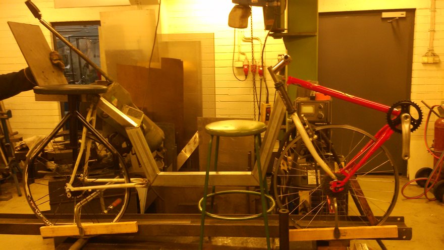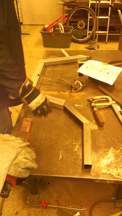 Vääntöjäykkyystarve on kyllä huomioitu suunnittelussa. Runko on 60 x 40 putkea, joten vääntöjäykkyys on paljon enemmän kuin maastopyörässä, jonka satula on kyllä tuota korkeammalla. Korkeus on, jotta ei tarvita niin paljon pituutta ja painoa. Jos ei onnistu, tehdään sitten matalampi, muttei manata etukäteen liian löysäksi. ![]()