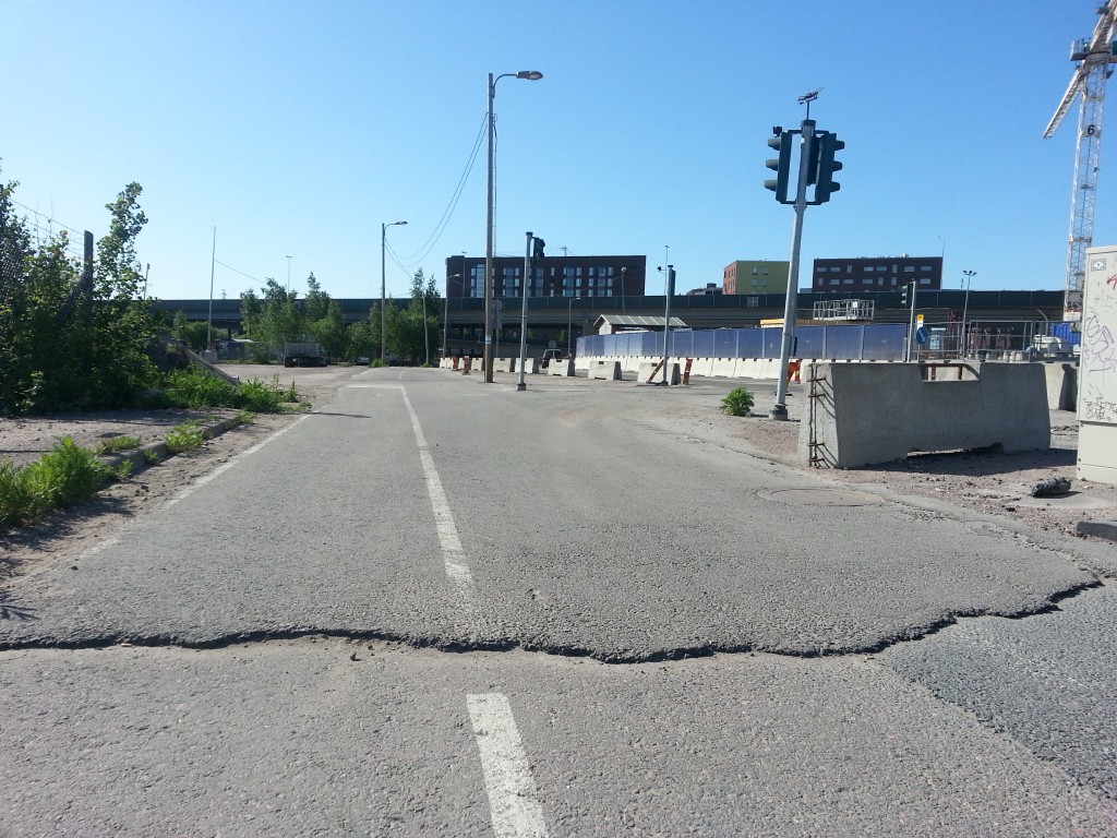 Sijainti Kalasatamassa koilliseen Itäväylälle nousevasta rampista, joka sijaitsee taustalla näkyvällä sillan kameran puolella sataplus metriä kamerasta.