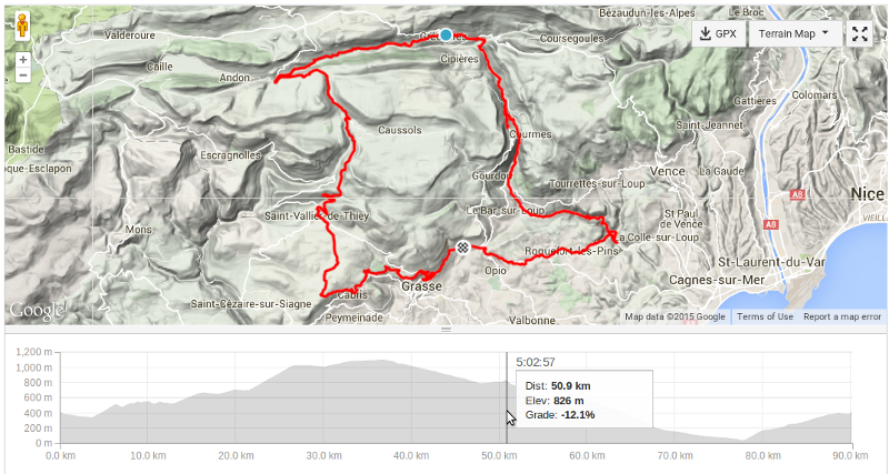Coursegoules ja Bouyon-Broc-Carros väli on upea pätkä, tajutonta maisemaa ja monta kymmentä kilometriä laskua!