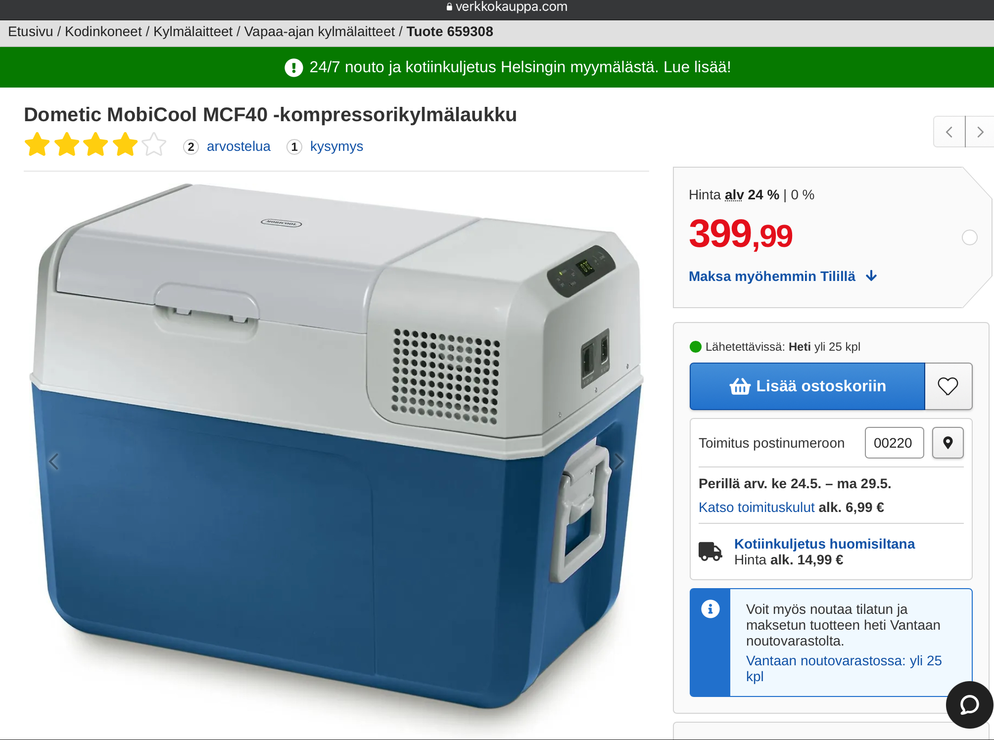 Kausipaikan kakkosjääkaappina meillä on tällainen 38 litran kompressorikaappi.