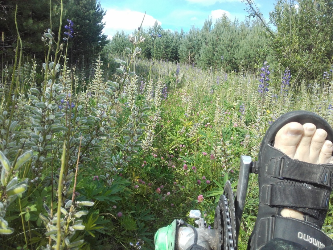 Lupiiniviidakossa ajellessa aatteli vaan jotta toivottavasti kovin syvää ojaa ei tule yllättäen vastaan.
