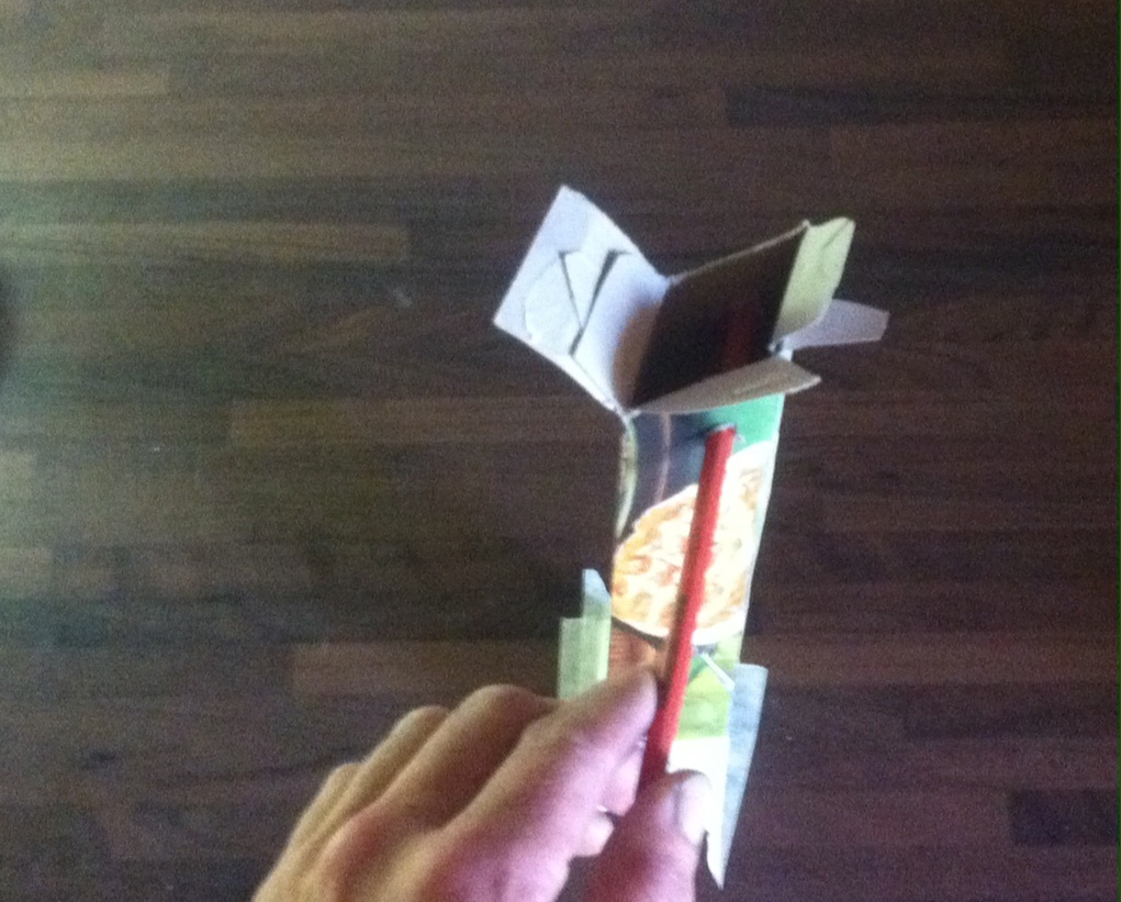 Onton kammen pääty antaa kyllä huomattavasti lisää vääntöjäykkyyttä. Tein aamulämpimiks pikku demonstraation elmukelmu paketista ja kynästä. Pahviputki mallaa kampea ja kynä poljinta.