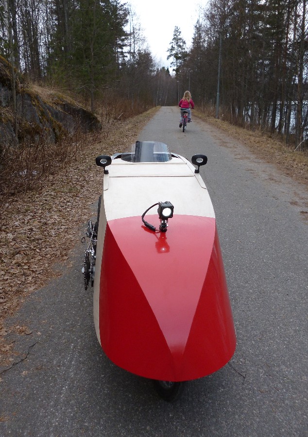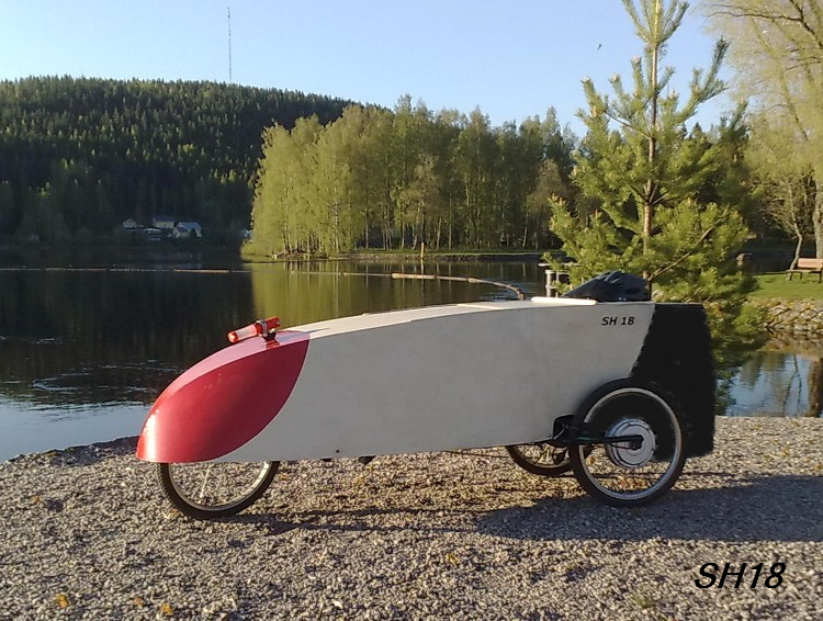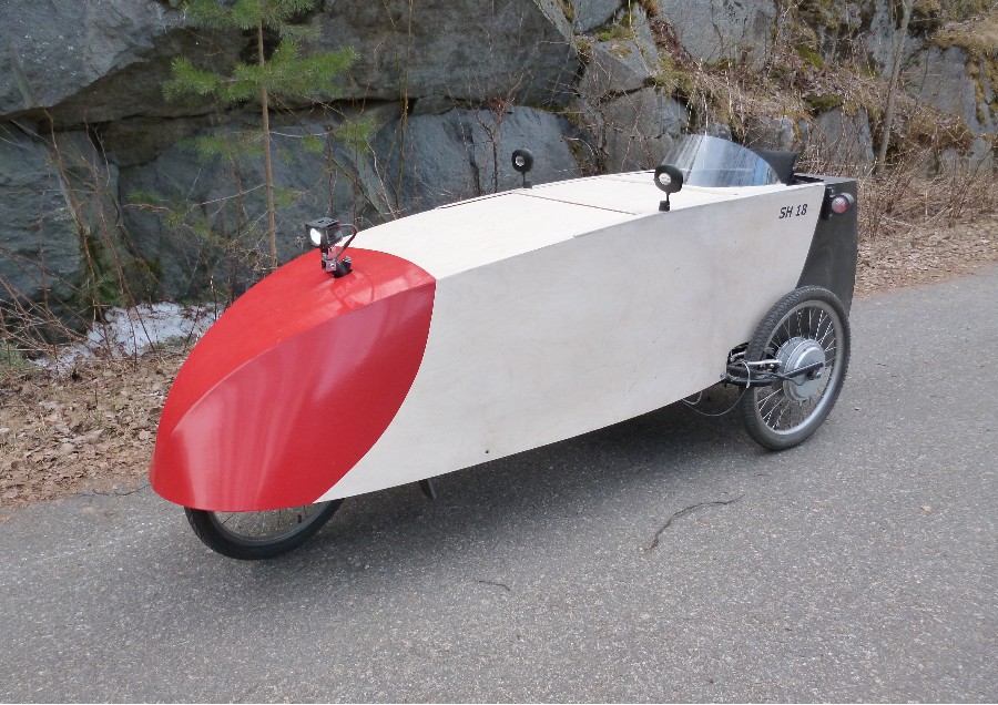 Kyllä SH18 on oikeastaan kaiken kaikkiaan aika hidas velomobiili. Kyllä suoralla ja tasaisella homma pelaa, mutta alamäissä ei uskalla päästellä täysillä, kun etupyörällä on liian vähän painoa. Samasta syystä ei ilman sähköavustusta talviajo suju kunnolla, kun vastamäissä tapposepelin päällä etupyörä lähtee luisuun vasemmalle, kun vain oikea takapyörä vetää. Osittain näiden syiden vuoksi lähdin rakenteleen tadpole SH22:ta, jossa ei ole näitä ongelmia.